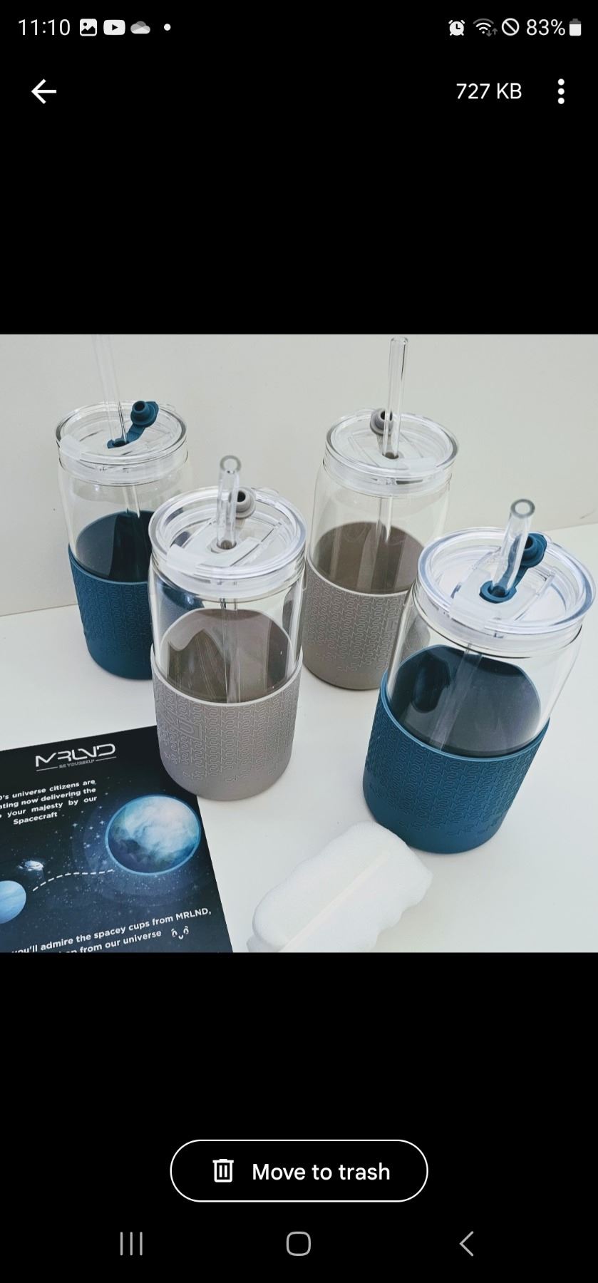 Mrlnd 4Pc Set 17oz Glass Drinking Cups, Lids, Glass Straws, And Cleaning Accessories Are Included, Brand New