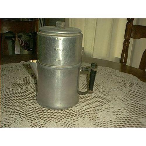 Dripolator six cup, wooden handle and knob,measures 9 inches high and 5 inches wide. marked Dripolator Healthful Coffee.