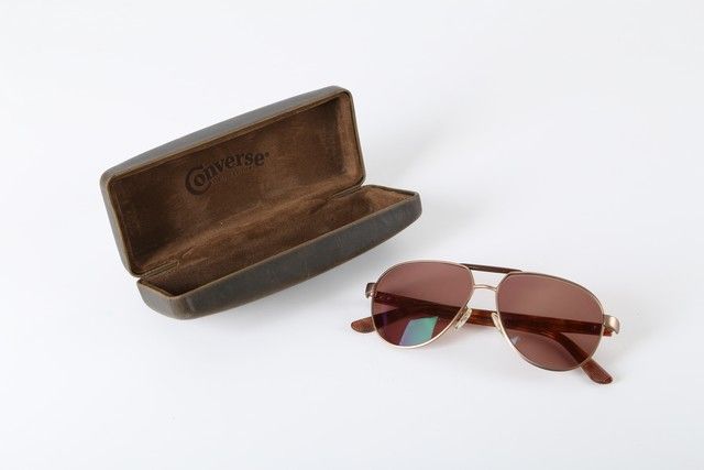 This pair of sunglasses was worn by the character “Driver” portrayed by actor Ryan Gosling in the 2011 motion picture “Drive”. The Converse Limited Edition “Cruise Control” sunglasses with amber tinted lenses have brass frames and hinges attached to faux tortoise shell plastic arms. Also included is their original Converse carrying case and cloth holder (not screen used).Driver wore these sunglasses during the sequence where he is dressed as a police officer to perform a car stunt while filming a movie on location in Los Angeles. The glasses are in excellent screen worn condition. This item was acquired directly from the production company and is accompanied by a letter of authenticity.