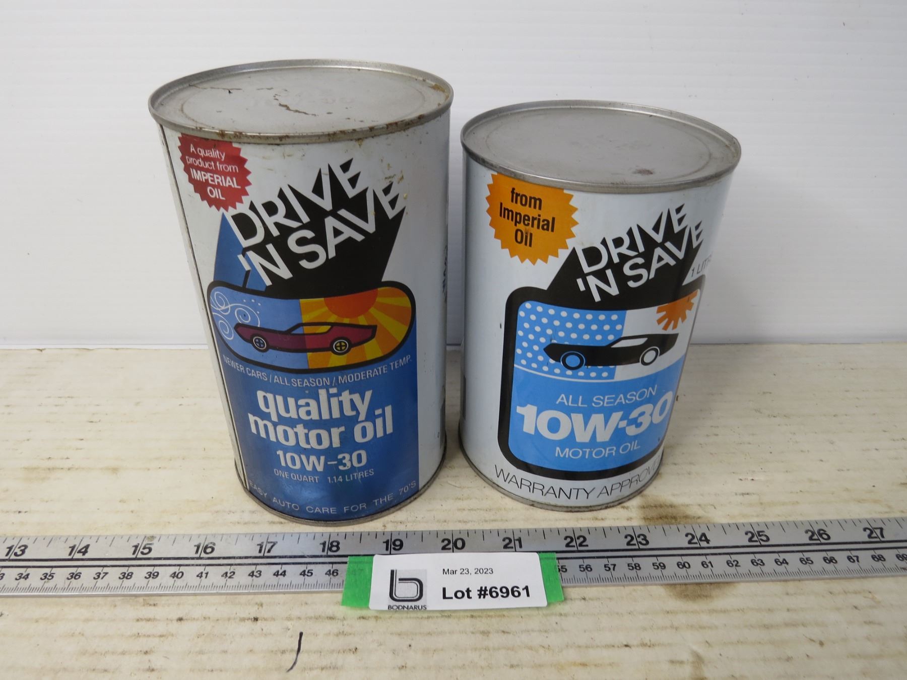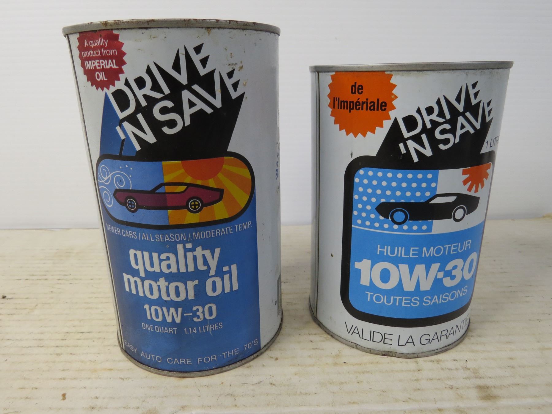 Drive N' Save 10w-30 Motor Oil Cans (empty - one red car - one black Car)