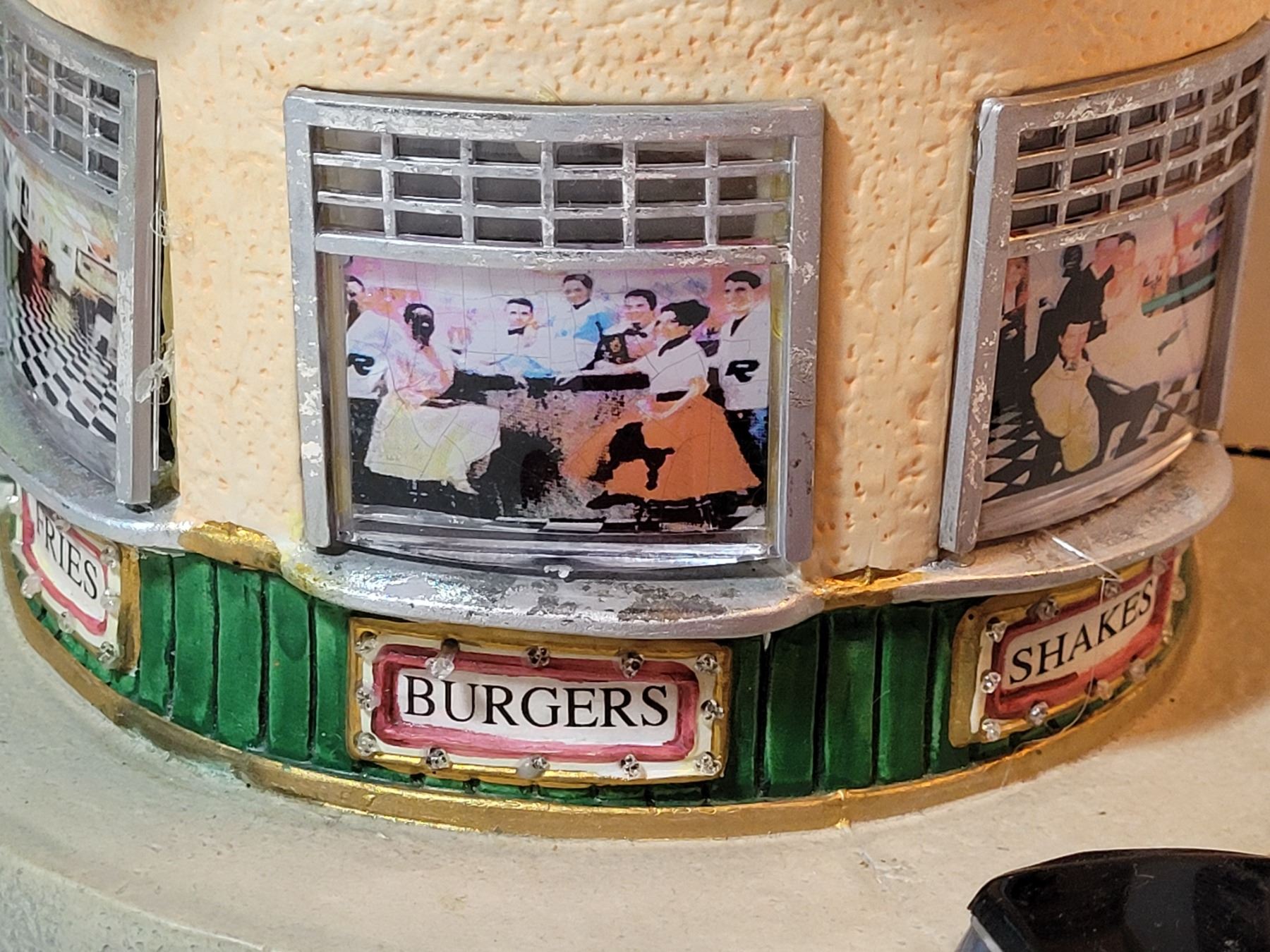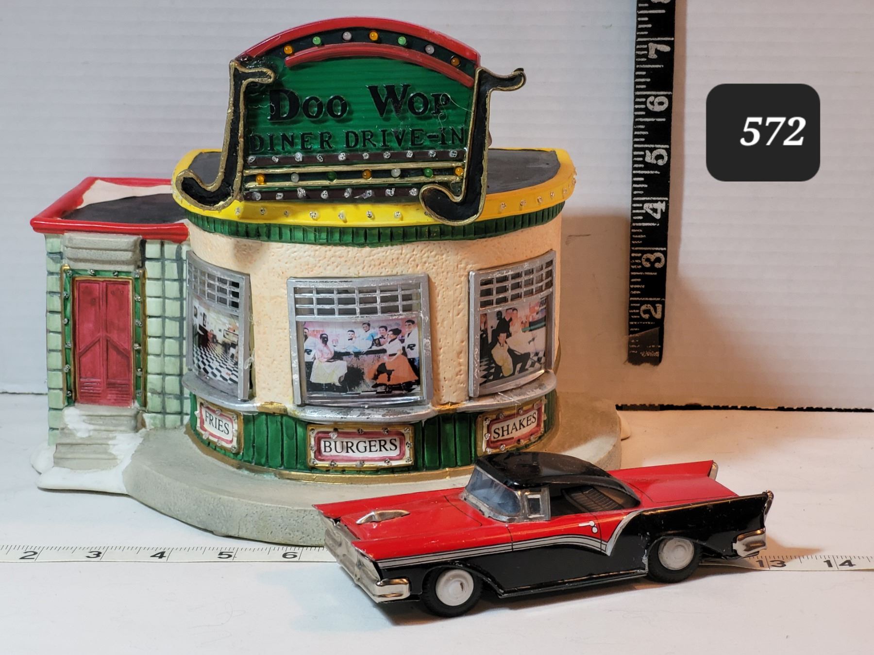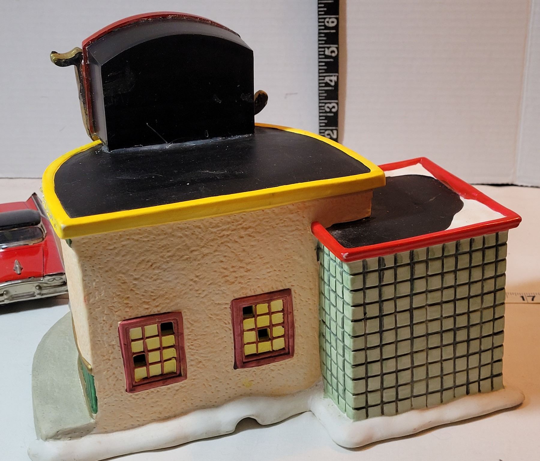 Drive in Diner diorama & 1950`s Japan made tin car.