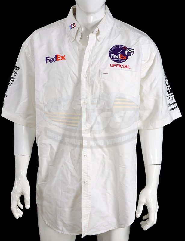 (Warner Bros., 2001) This shirt was acquired by the production for use by an extra as a "race official". The shirt is a size X-large and features the Fedex and other sponsor logos. The shirt has minor wear from use, but remains in good condition.