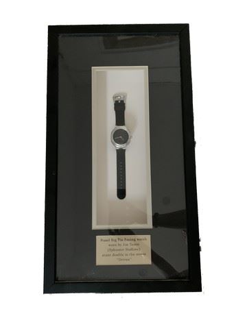 Driven - Joe Tanto's (Sylvester Stallone) stunt double "Fossil" Big Tie racing watch in a shadowbox, plexi frame (approx. 21"x12").