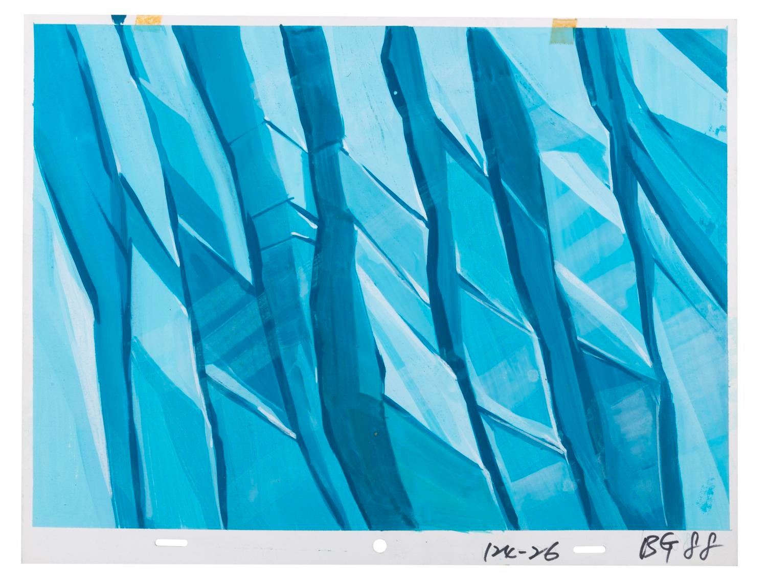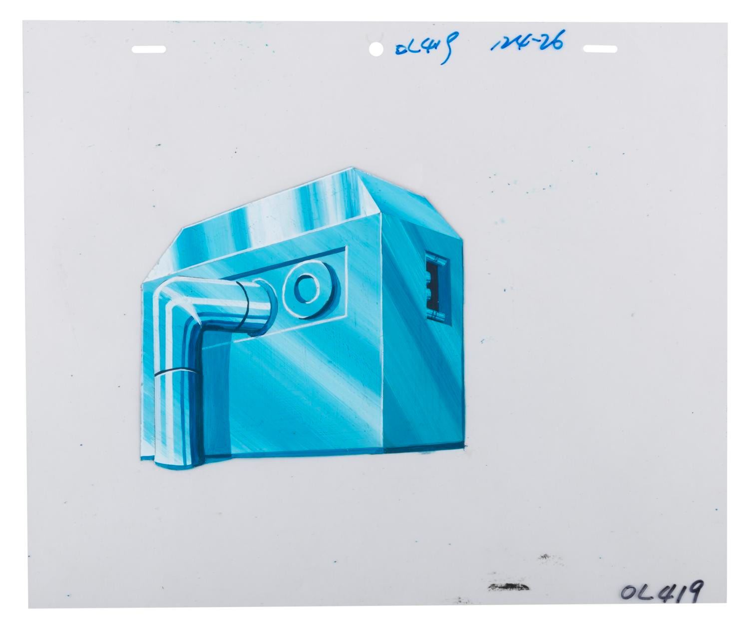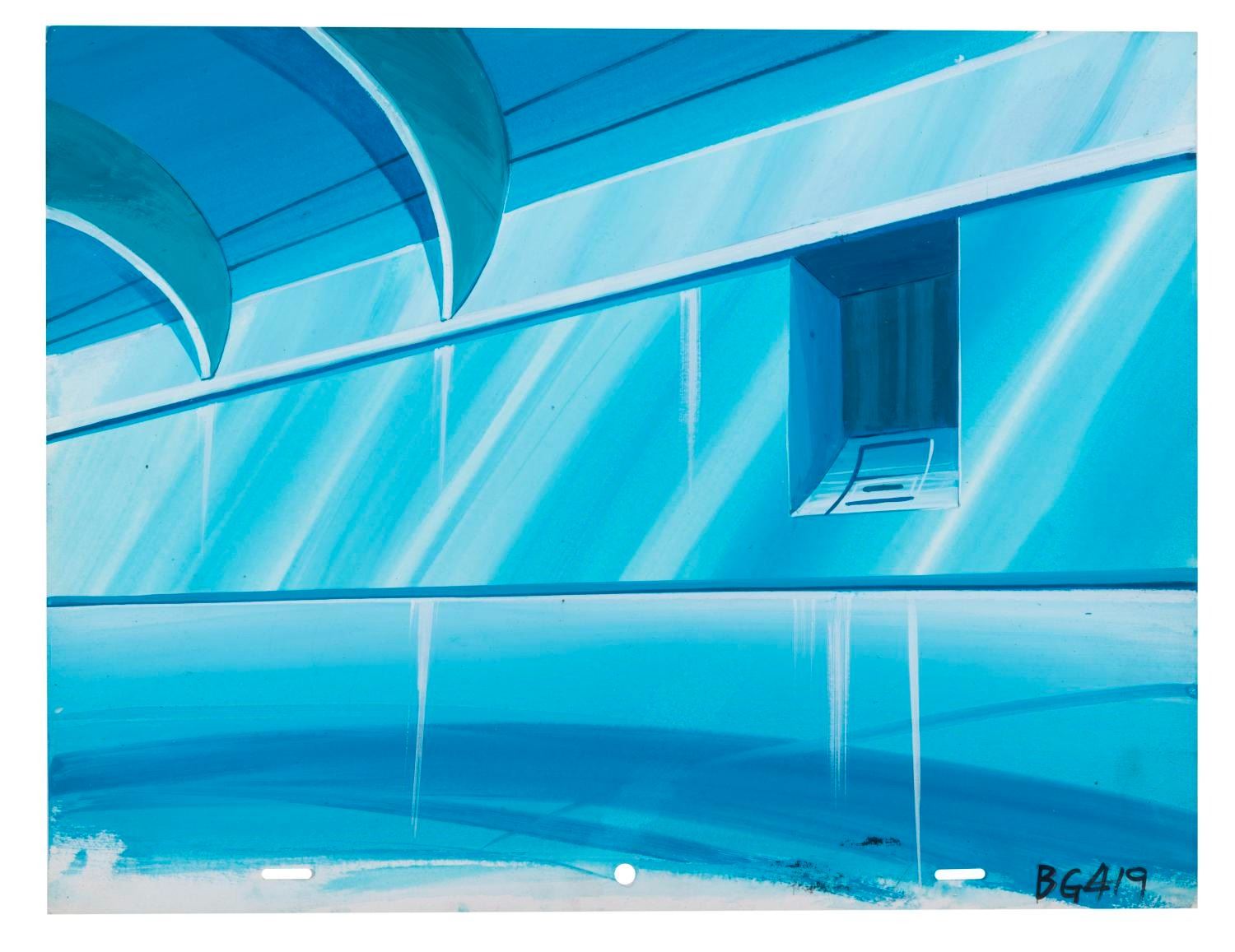 (Lucasfilm/Nelvana, 1985) A collection of six original background paintings from the “Droids” animated series, including two overlay scene cels. Each measuring 10.5” x 13.75”, the backgrounds accomplished in gouache and cels display in very good condition, with typical wear from production use and age.