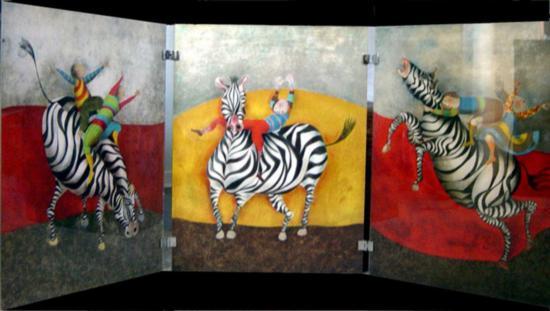 "Droles de Zebres (Triptych)" 1978Limited Edition PrintLithograph TriptychSize: 25.5 x 20 inCertificate of Authenticity: Framed with Plexiglass: Each piece is in Plexiglass & hinged togetherHand Signed: Artist edition on Japon paper.