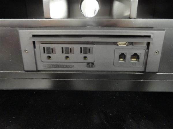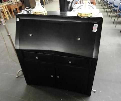 Drop Front Desk with Computer - Phone and Power Hookups - Note some door edge damage.