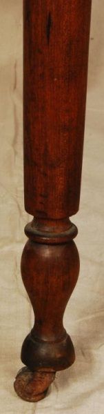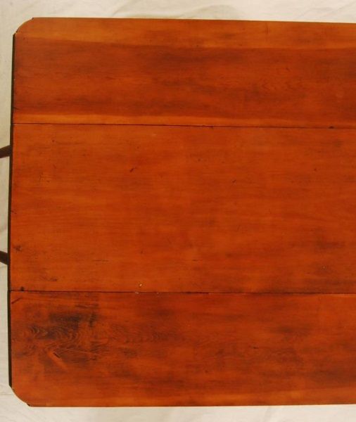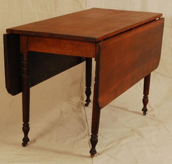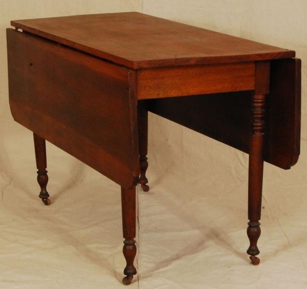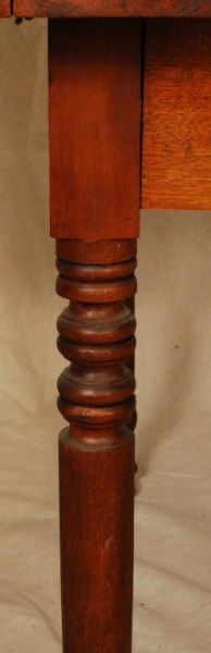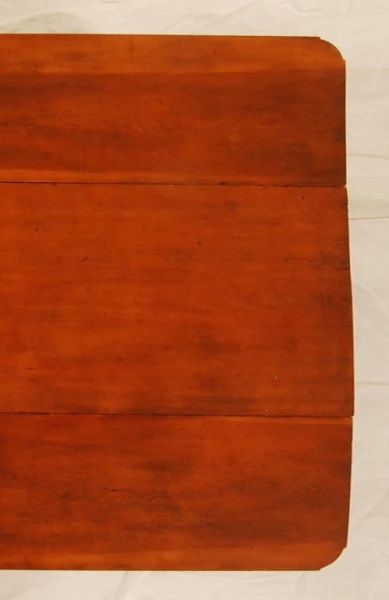 Brazoria. Pine and Walnut. Turned walnut legs. Wide board construction. Notched corners on drop leafs. Table measures 28 1/2" tall, 48" long, and 48" wide. mortise and tenon jointed.