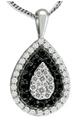 Drop shape black and white diamond pendant with 18 inch Rope Chain