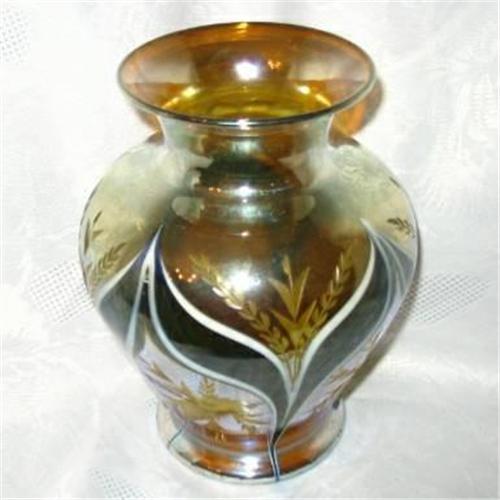 Durand 7" Amergris glass wheel cut floral vase, signed. 1924-1931. USA. Excelent Condition.