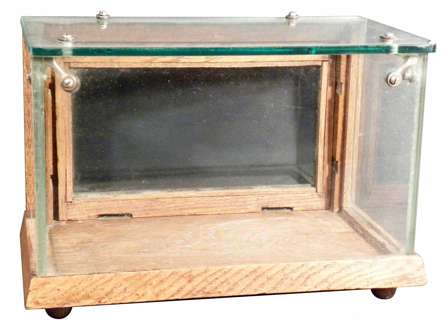 Drug Store Oak and Glass Counter Top Showcase. Original feet on bottom. Very good condition. 14 X 9 1/2 X 7 1/2 inches.