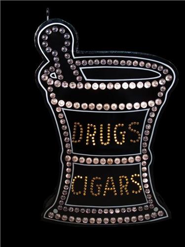 Drugs - Cigars Trade Sign w/ Multi-Colored Jewels Lights up 32 x 58 "