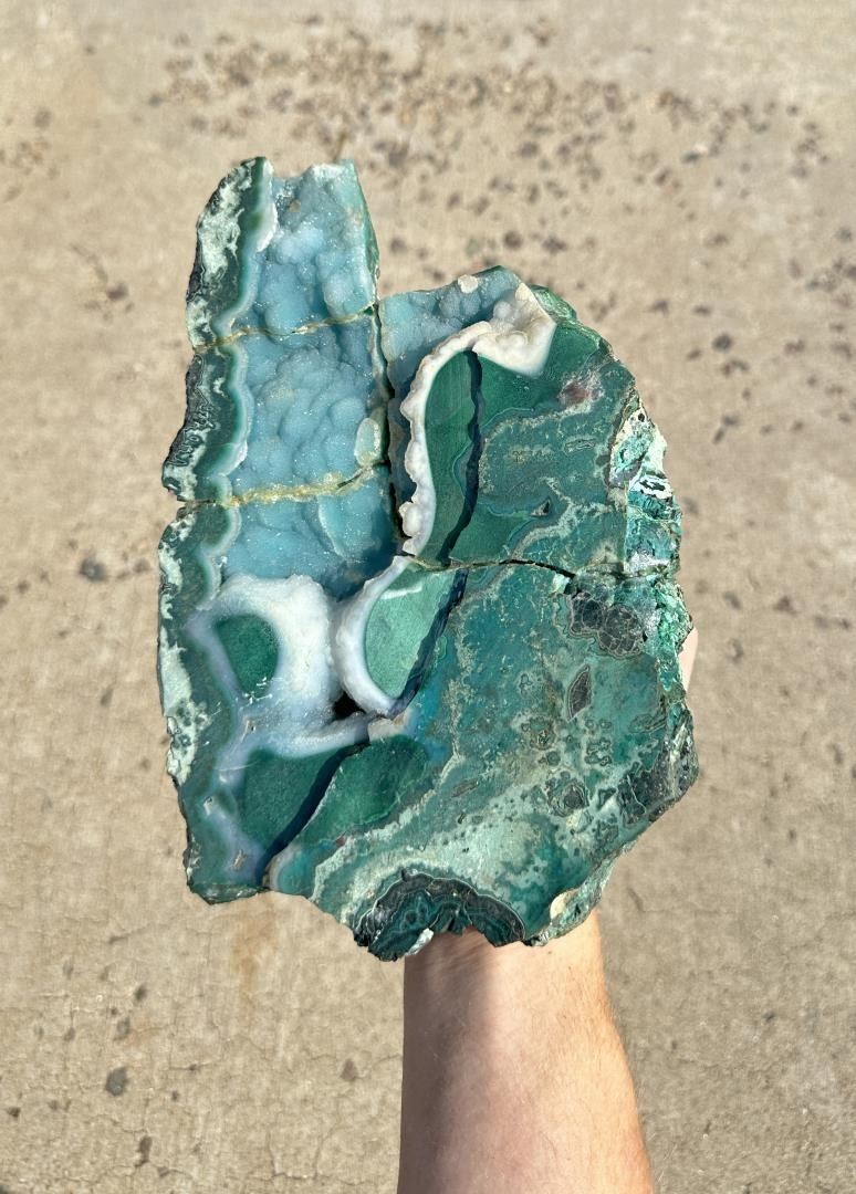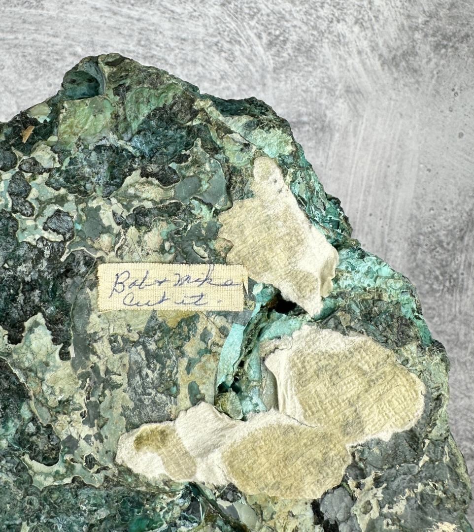 Bisbee Arizona. Has been broken and repaired. 1646 grams. 9 1/4" by 6 1/8" by 1 5/8". Provenance: From the Estate of Kitty's Copper Shop Butte Montana.