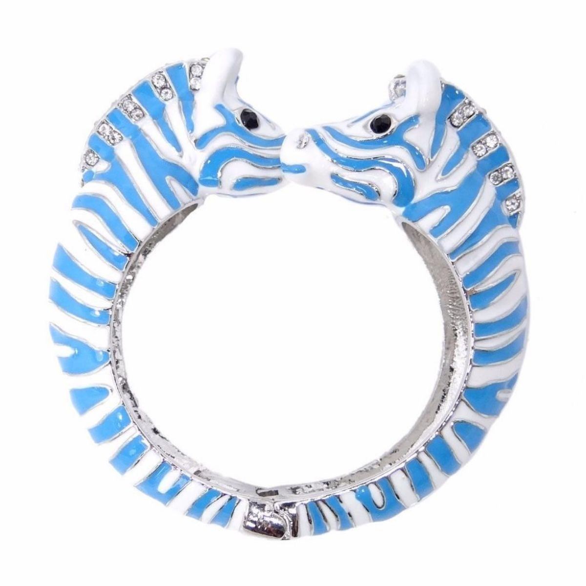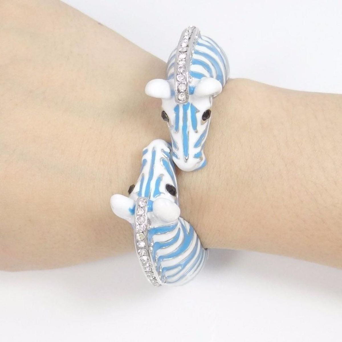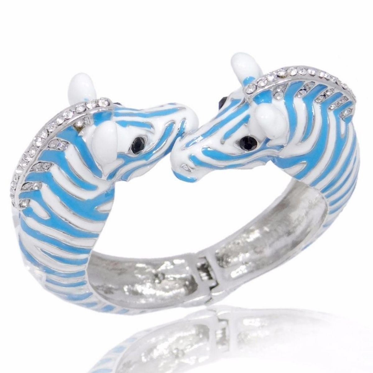 Lovely light blue dual zebra enamel & Austrian crystal bangle cuff bracelet. Â