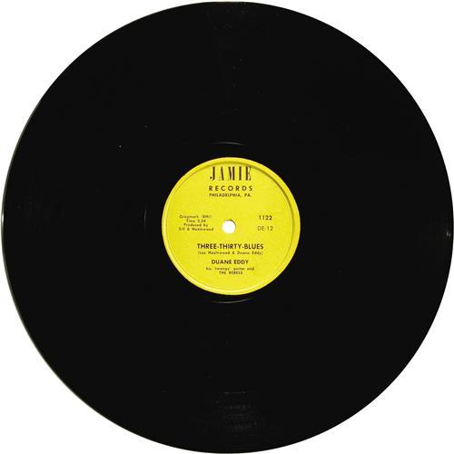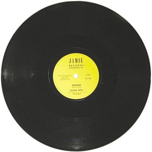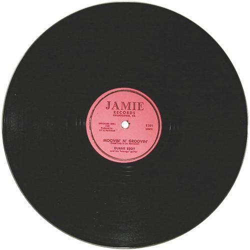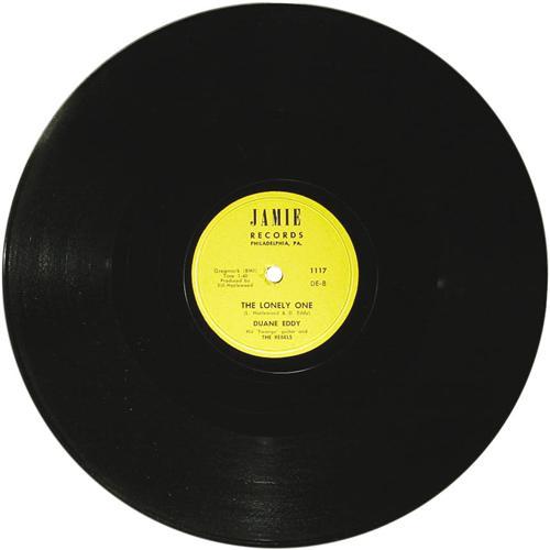 <B>Duane Eddy 78 Group of 10.</B></I> Four selections from the famed Rock guitarist, who defined the term "twangy" with his popular instrumentals. Yes, we touted "Group of 10" - there are multiple copies of two of the selections! Included are three copies of "Moovin' N' Groovin"/ "Up and Down" (Jamie 1001, 1958), one in MT 9 and two in NM 8; "Ramrod"/ "The Walker" (Jamie 1109, 1958) in NM 8; five copies of "The Lonely One"/ "Detour" (Jamie 1117, 1959), three in MT 9, and one each in GM-MT 10 and NM 8; and "Yep!"/ "Three-Thirty Blues" (Jamie 1122, 1959) in MT 9. <I>From the GRT Collection.</B></I><BR><BR><b>Shipping:</b> Recordings (<a target="_blank" href="http://www.heritageauctions.com/common/shipping.php">view shipping information</a>)