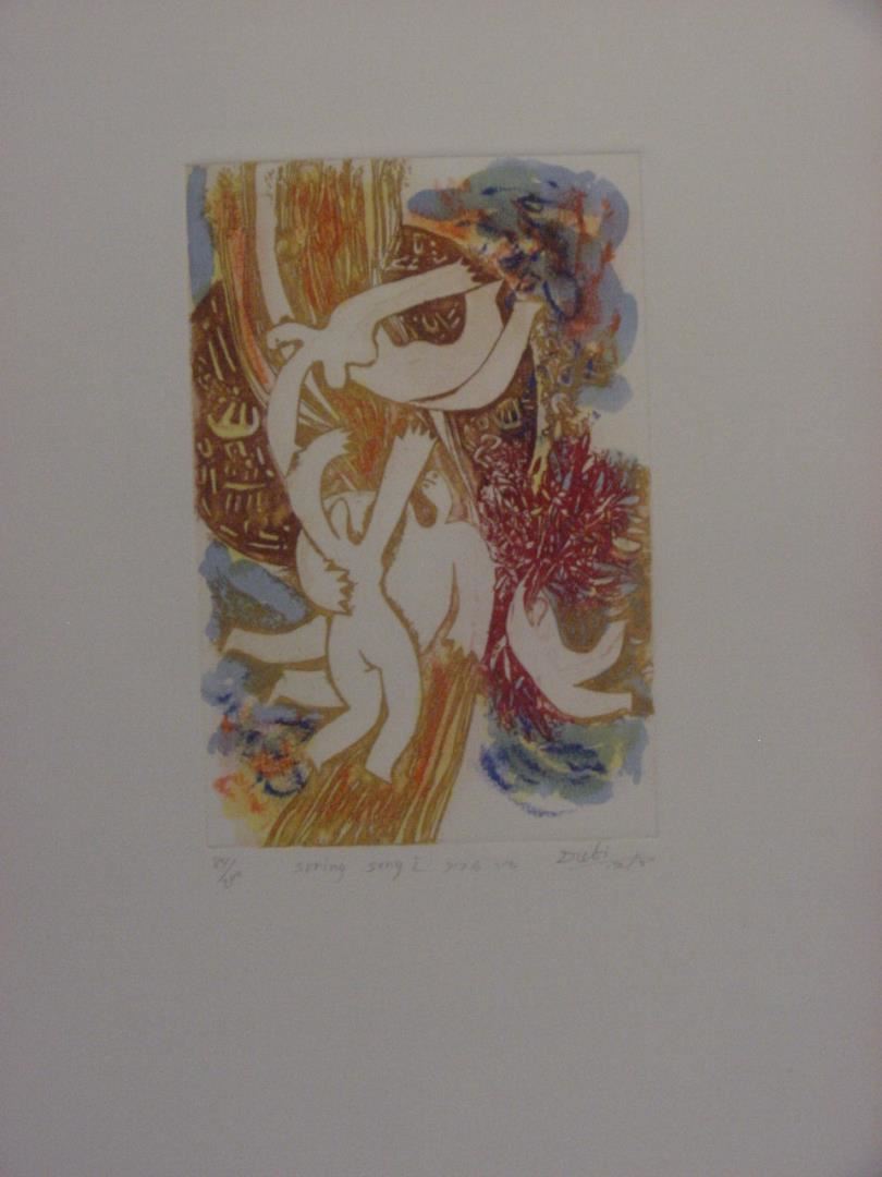 A hand signed and numbered triptych of etchings on paper by Dubi Arie. Each image 6" x 9", edit. of 200, unframed w/ COA