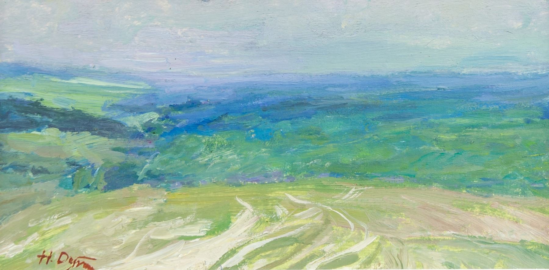 Oil on board painting, featuring seascape scene. Signed by the artist Dubina Nikolay Alekseevich (Ukrainian, 1939-1994) on the lower left corner. 3 7/8 x 7 5/16 inch (9.84 x 8.41 cm). The artist Dubina Nikolay Alekseevich (1939-1994). The Ukrainian painter. Was born in 1939 Krasnoarmeysk, Donetsk area. Dubina attended the Dnepropetrovsk art school (1966) and the Kiev art institute (1972). Studied with V.Gurin, A. Plamenitsky, V.Vyrodovoj. He is a listed artist and a member of the Union of artists of the USSR since 1984. Personal exhibitions include the following: 1989, 1995 (Donetsk). He is also the winner of the regional award of A.Kuindzhi (awarded posthumously, 1995). Works are stored in Donetsk an art museum, private collections of Ukraine and other countries. He is also listed within the literature, "A Dictionary of Twentieth Century Russian and Soviet Paintings 1900-1980." (Matthew Cullerne Bown, 355). PROVENANCE: Private collection (Kiev, Ukraine)