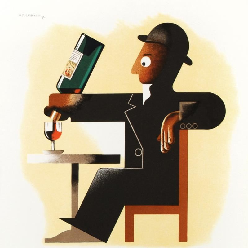 "Dubo Dubon Dubonnet" is a hand pulled lithograph on paper by the RE Society, image originally by Adolpho Mouron Cassandre. Includes Certificate of Authenticity! Measures approx. 34" x 18" (with border), 31" x 15.5" (image).