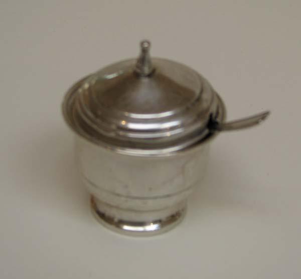 Dimensions: 3 salt and 3 pepper each 4.25 x 1.75 inches in diameter and total 1 lb 5.8 oz, platter 8.6 x 6.45 inches 4.5 oz, sugar dish 2.25 x 1.75 inches 1.3 oz