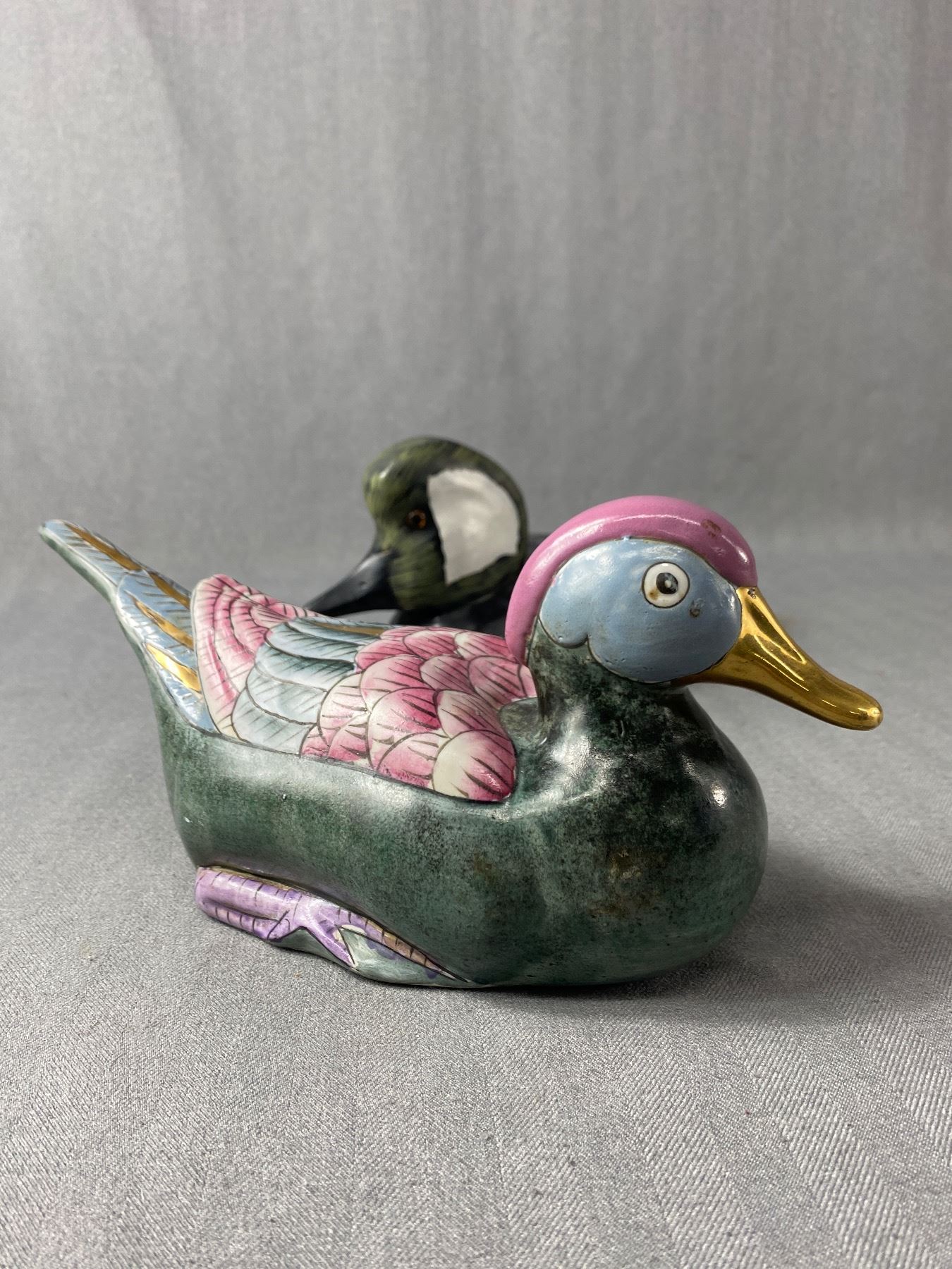 Duck Décor Lot - 2 Wood, 1 Resin & 1 Painted Asian Ceramic