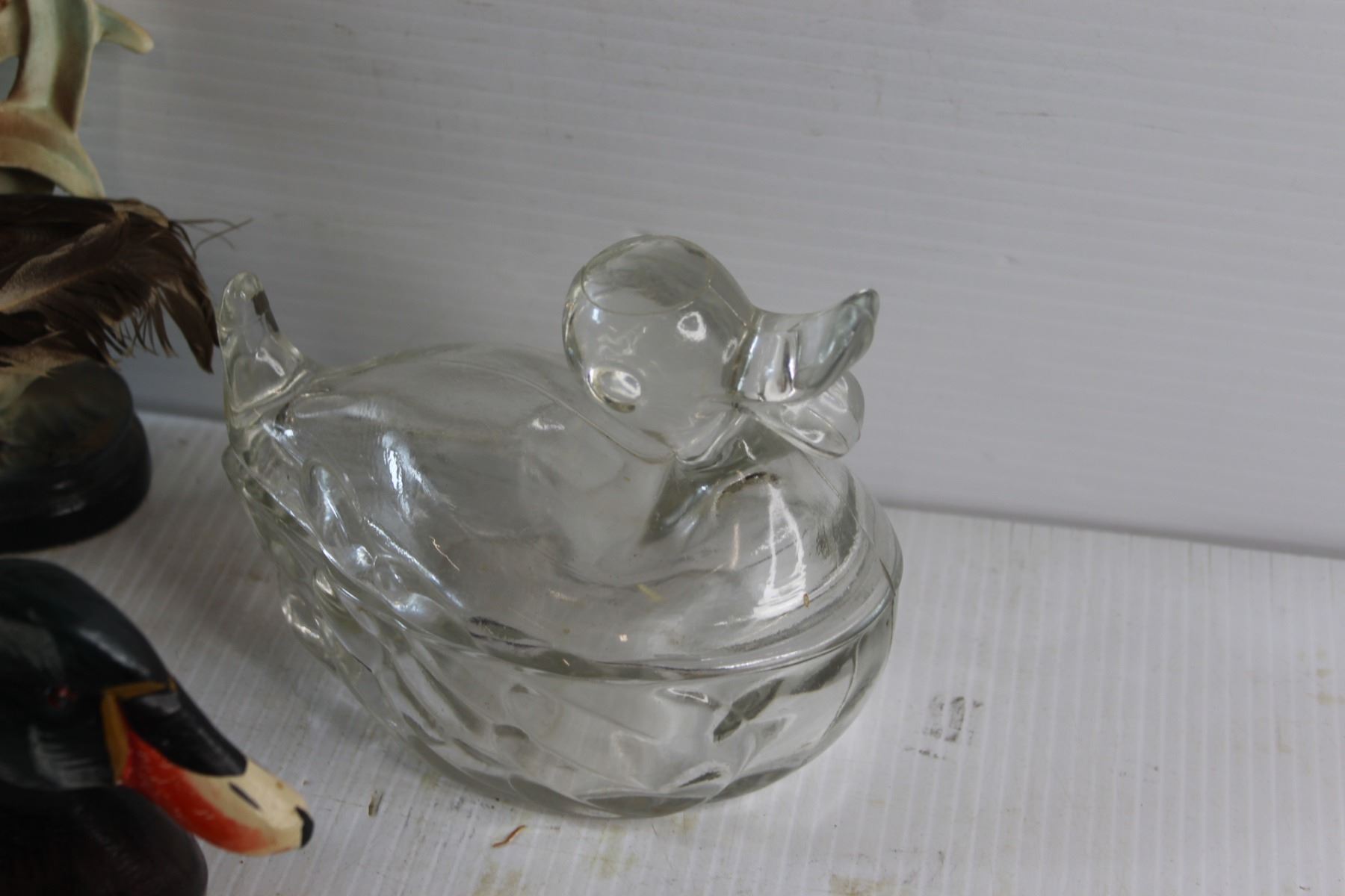 Duck Decorations and Glass Duck Candy Dish