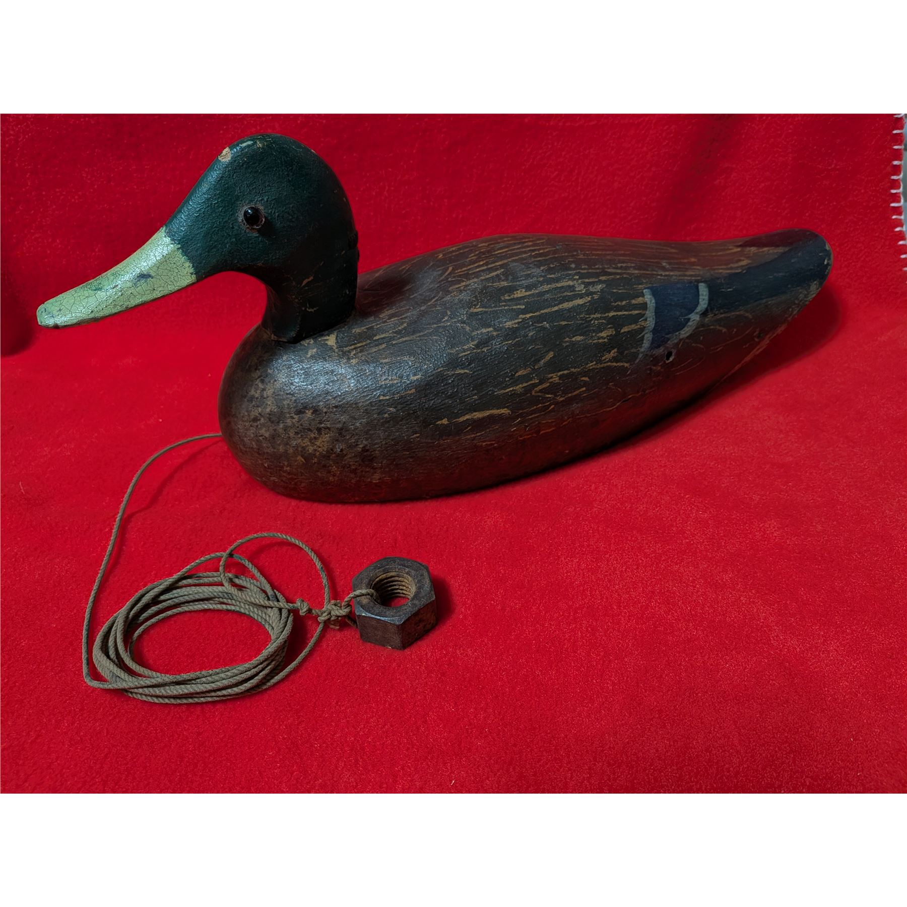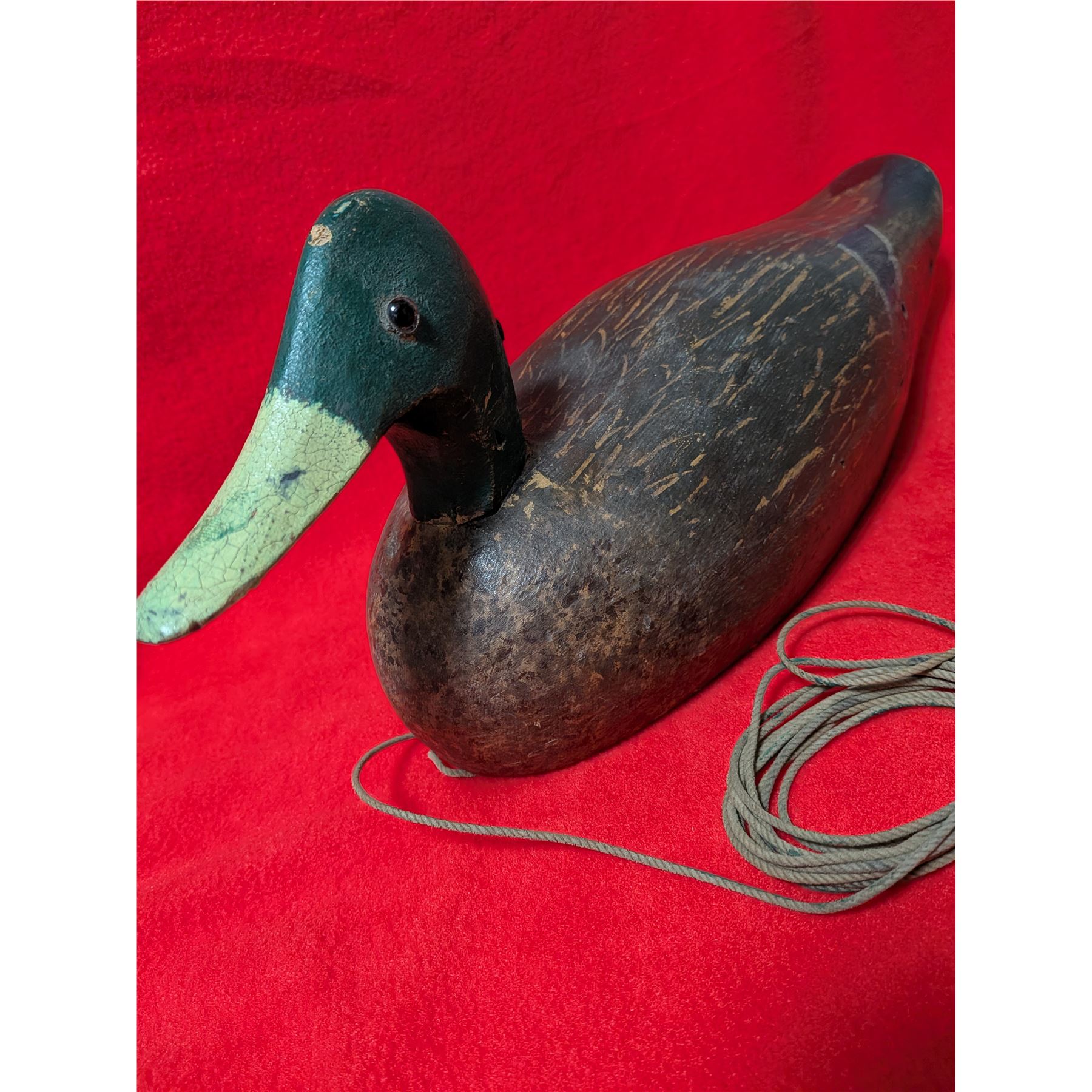 George "Beany" Anderson (1882-1950) This Mallard Drake decoy is 15" in length with heavy line & weight. George was a noted Canadian folk art decoy carver based in Trenton, Ontario, during the 1930s.