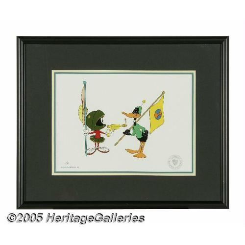 <B>Duck Dodgers in the 24 1/2 Century Limited Edition Sericel #25/250 (Warner Bros., 1991).</B></I> This limited edition sericel captures the initial confrontation between the mockingly confident Duck Dodgers and his adversary, Marvin the Martian for the right to colonize Planet X. The talented artists of Warner Bros. Animators have recreated this image directly from the classic film through the fine art of serigraphy. This is number 25 out of an edition of 250. This sericel has an image area measuring 14"" x 10"", and the condition is Excellent. This lot also includes a certificate of authenticity. <BR><BR><B>Important notice:</B> Heritage usually auctions material at the rate of 200-250 lots per hour. On some occasions eBay Live bid software or the Internet may not be able to keep up with the pace of the auction. We recommend placing a realistic absentee bid now as insurance to avoid disappointment. Occasionally the auctioneer may eliminate or reject an eBay Live bid, and the auctioneer may also reopen a lot after the close of the eBay live bidding (usually because we missed an audience bid), and may reject your bid even if it shows you as the winning bidder. By bidding via eBay Live, you agree that Heritage may award the lot to another bidder at its sole discretion under the circumstances described above or any other reasonable circumstances. Since eBay bids are not shown to us until we open the lot on the floor, we treat those bids just like floor bids. In most cases the floor responds before the eBay bid is presented to us, due to Internet lag time, so for consistency we have made it a policy that floor bids are always considered first over tie eBay live bids. Also please note that all Heritage lots purchased through eBay Live carry a 20% Buyer's Premium. Please make sure you read the Terms and Conditions before you bid. This lot is being auctioned in conjunction with a live floor auction by Heritage Galleries & Auctioneers. All final auction and invoice inform
