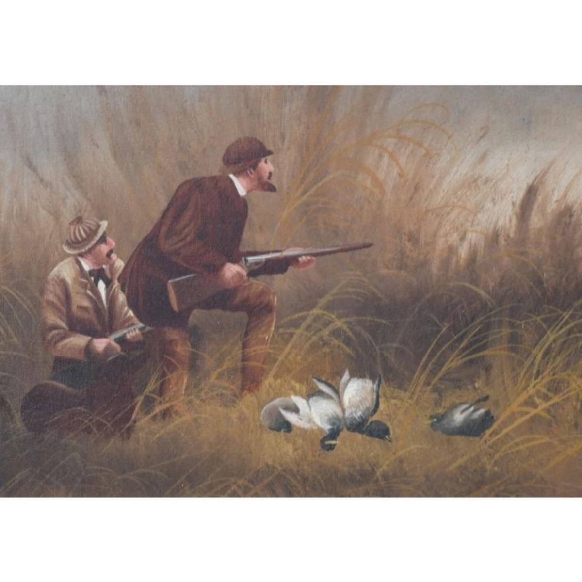 Duck Hunters oil on canvas painting. No signature found. 43"x28" Framed