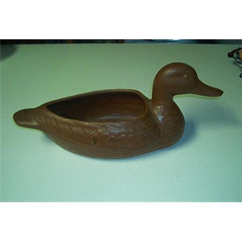 Featuring a Duck Planter. Maker unknown. Bottom base resembles McCoy. This planter measures 14 1/2 inches long from beak to tail. Opening diameter meaures 6 1/2 inche long by 4 inches wide. Basse measures 7 1/2 inches long by 3 1/2 inches wide. Depth measures 2 3/4 inches. Detailed feathers, eyes, and beak. A very nice planter.