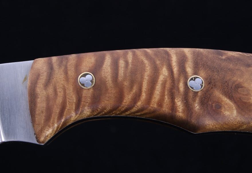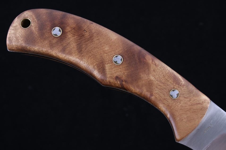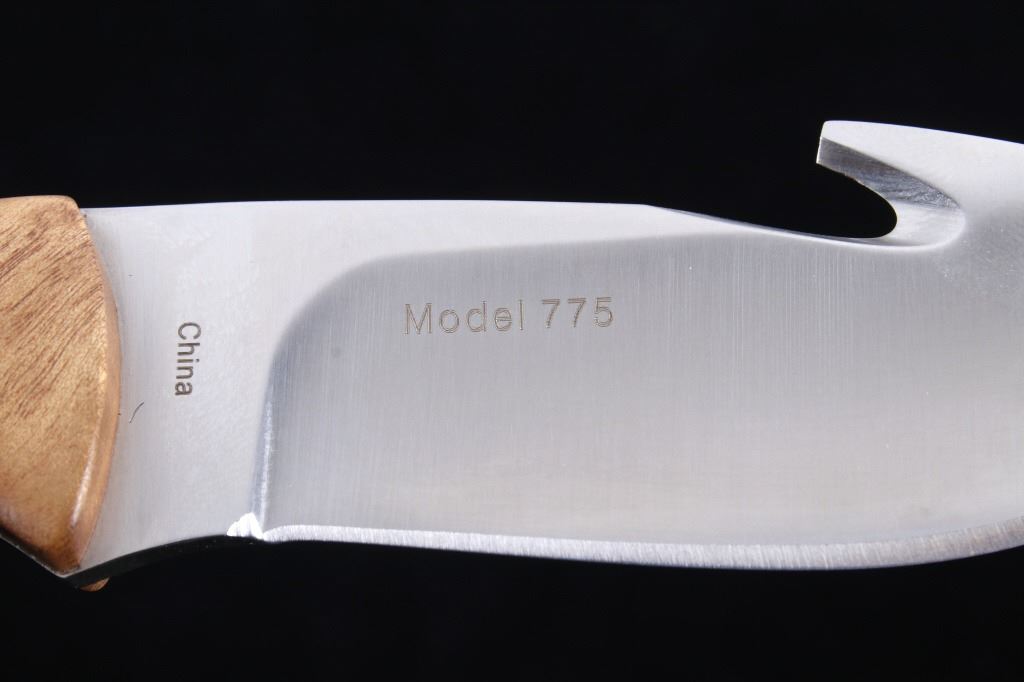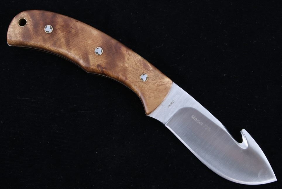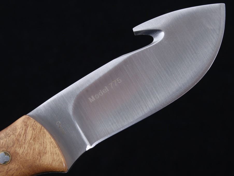 Available in this lot we have a Duck Unlimited limited edition Browning skinning knife and original box. The knife displays a stainless steel fixed blade with a gut hook along the back of the tip. The knife blade is marked in engraved lettering reading "Missoula 2014 Ducks Unlimited Sponsor" with a outline of a ducks head and "Model 775 China". The grip displays a wood burl handle with three mosaic pins. The knife comes with a nylon sheath and its original Browning box. The knife shows good condition overall with no visible wear. The knife measures 8" long with a 3 1/2" long blade.