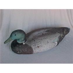 Duck decoy, cork with wood tail and head, one eye missing 20" long X 7" high Estimate 50/150...