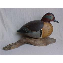 Duck on driftwood base, nicely painted mallard, crack on bottom, 14" long X 8" high Estimate 1...