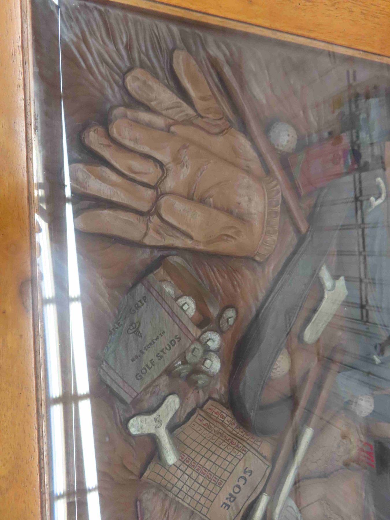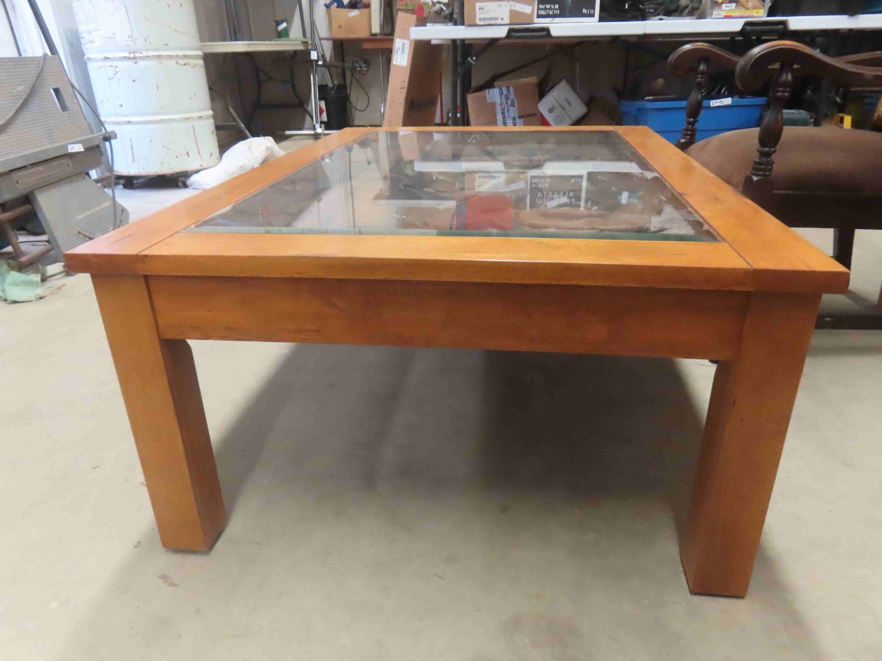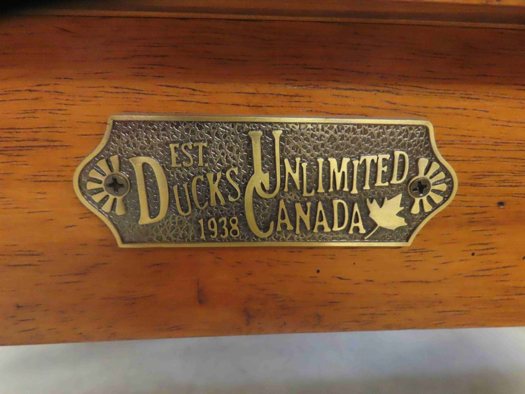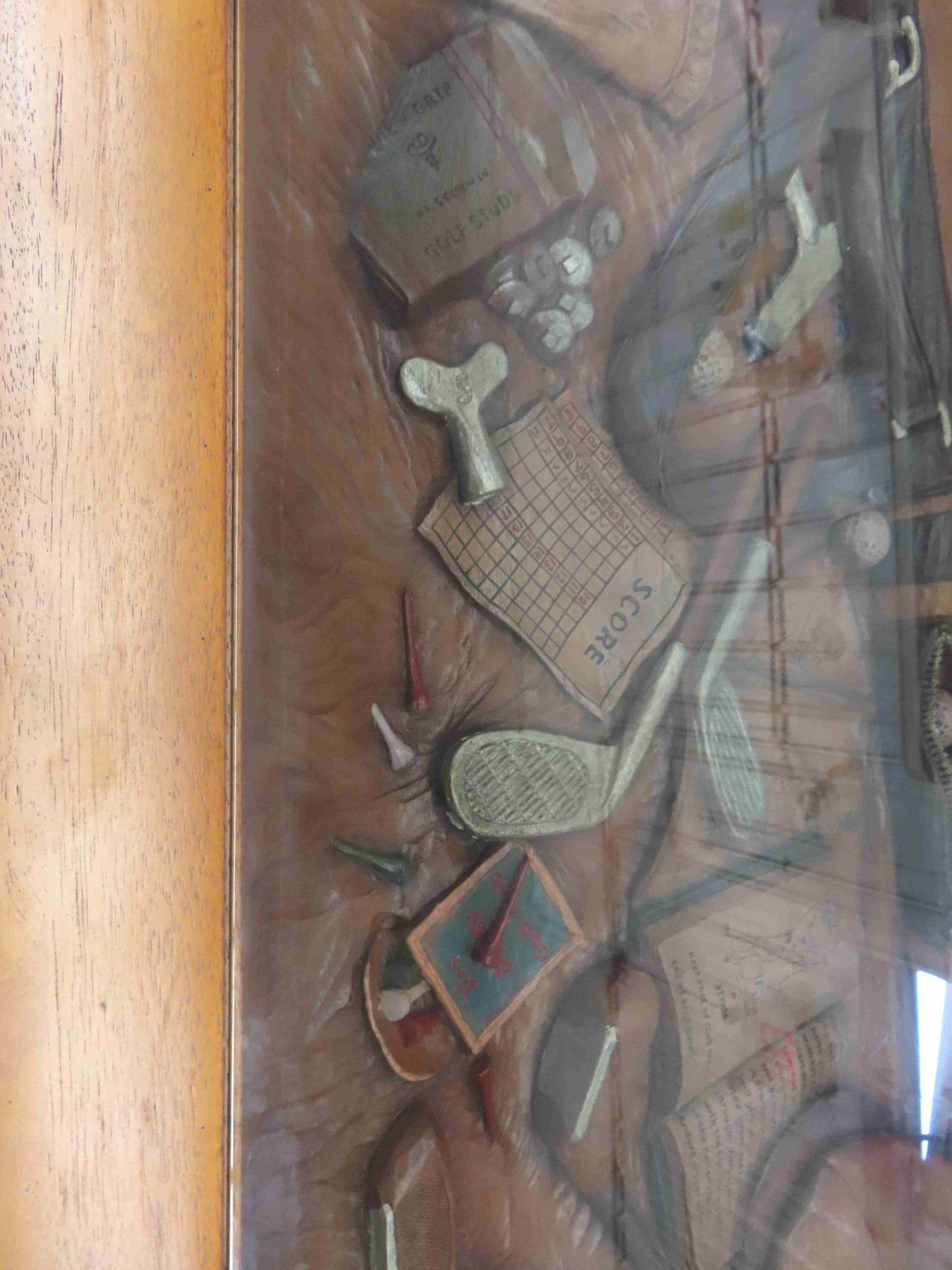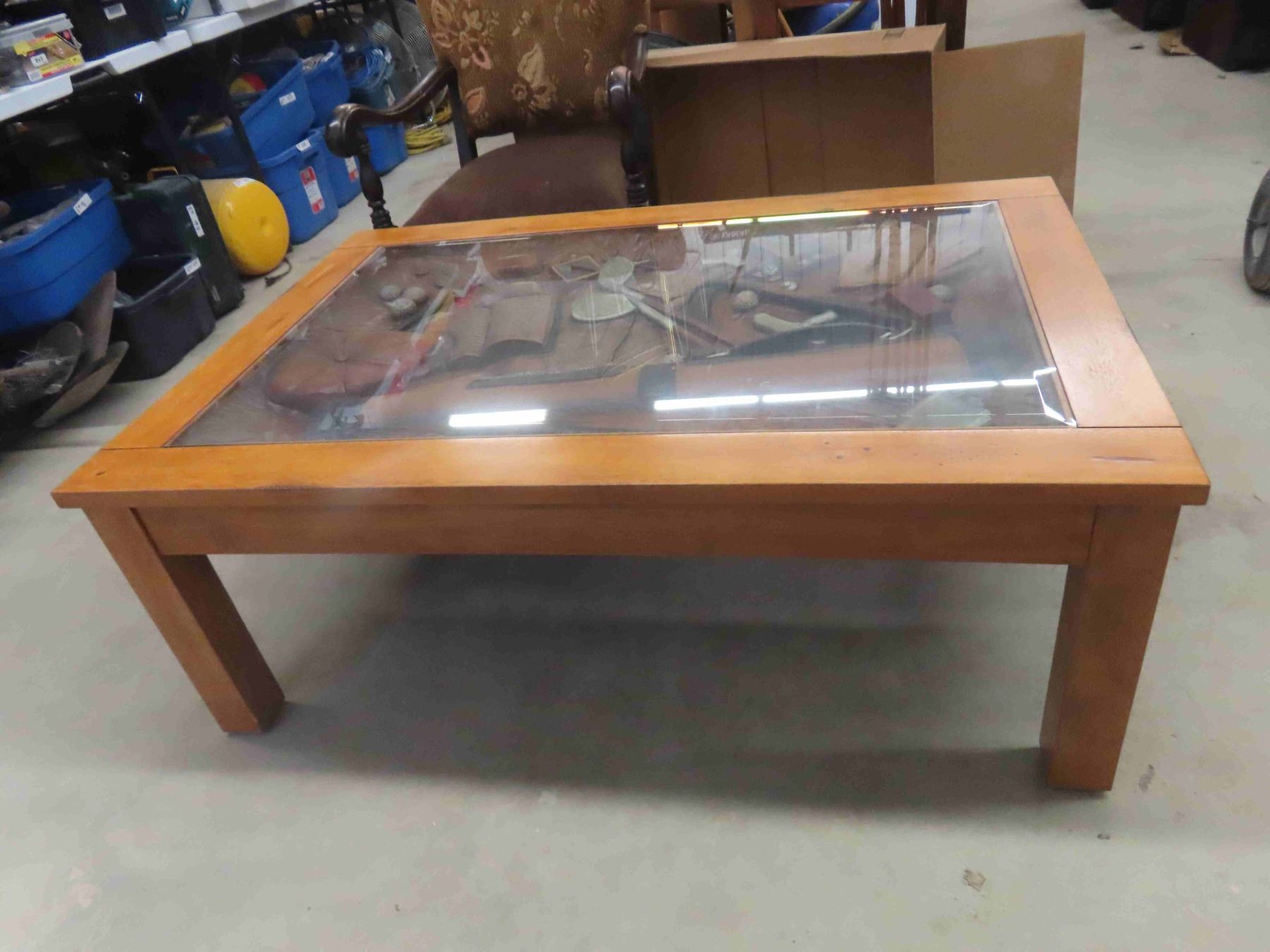 Ducks Unlimited Unique Oak Coffee Table with Glass Top Displaying Everything a Golfer Needs 33 1/2'' x 49'' x 18 1/2''