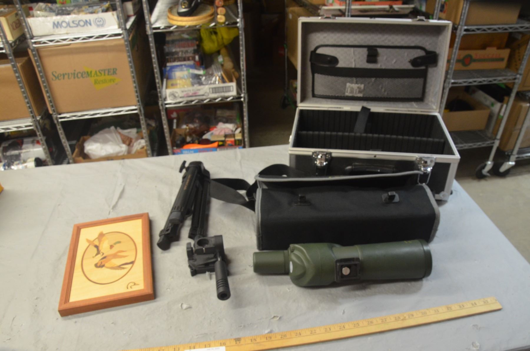 Ducks Unlimited Wood Inlay Picture and Spotting Telescope w/ Case