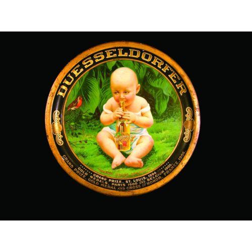 Duesseldorfer Beer Tin Serving Tray, Indianapolis Brewing Co., some minor scratches around the rim otherwise very good condition, 12 inch diameter.