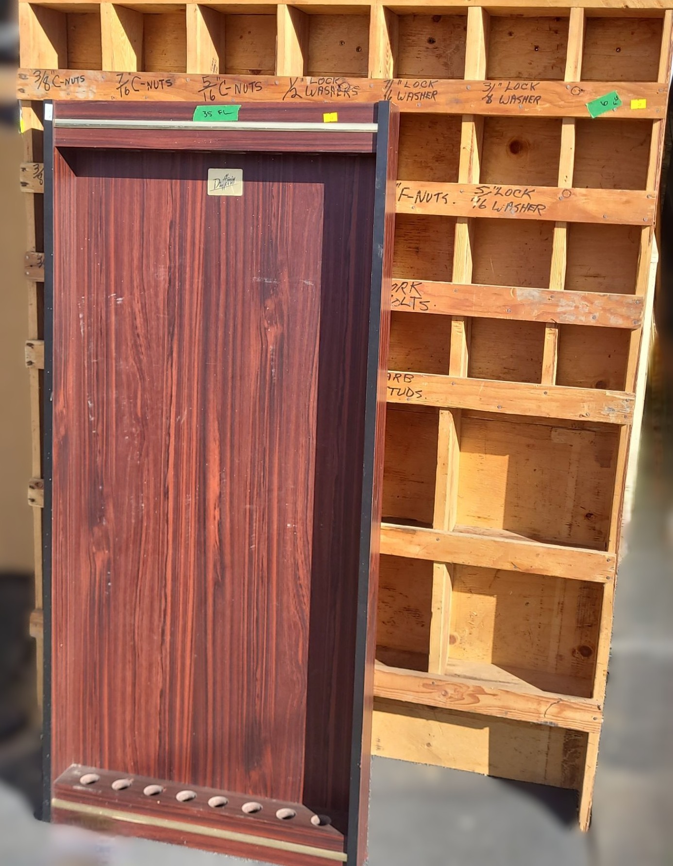 Dufferin Pool Cue Holder 24 W, 3 D, 51 T and Wooden Parts/ Tools Storage Unit 43.5 W, 6.5 D, 56 T