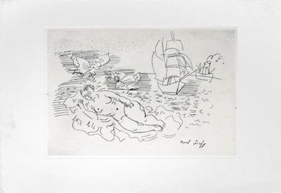 Reference #: ULYY9305 Artist Name: Dufy, Raoul Title: Baigneuse Medium: Etching Edition Size: Unknown Year: Unknown Paper Size: 18 x 13 inches Image Size: 8.75 x 12.25 inches Condition: B: Very Good Condition, with signs of handling or age Notes: Baigneuse. Original etching, c. 1930. Signed in the plate. Una Johnson suggests that this etching was commissioned by Vollard for a porfolio of original etchings by Dufy, Matisse, Rouault and others. It was never editioned, and only a limited number impressions were printed. See Una Johnson's Museum of Modern Art exhibition catalogue, Ambroise Vollard Editeur.