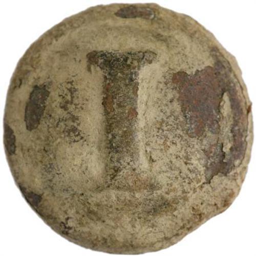 <B>Dug Civil War Era Confederate States Button,</B></I> 23mm, infantry I button, missing the shank with rusted back plate, in a plastic box. Dug condition. <B></B></I><BR><BR><b>Shipping:</b> Miscellaneous Collectibles, Smal (<a target="_blank" href="http://www.heritageauctions.com/common/shipping.php">view shipping information</a>)