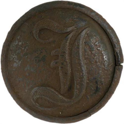 <B>Dug Civil War Era Confederate States Button,</B></I> 23mm, infantry Old English scriptI button, with shank and S. ISAACS CAMPBELL & CO LONDON 71 JERMYN ST. blank back mark, in a plastic box. Dug condition.<BR><BR><b>Shipping:</b> Miscellaneous Collectibles, Smal (<a target="_blank" href="http://www.heritageauctions.com/common/shipping.php">view shipping information</a>)