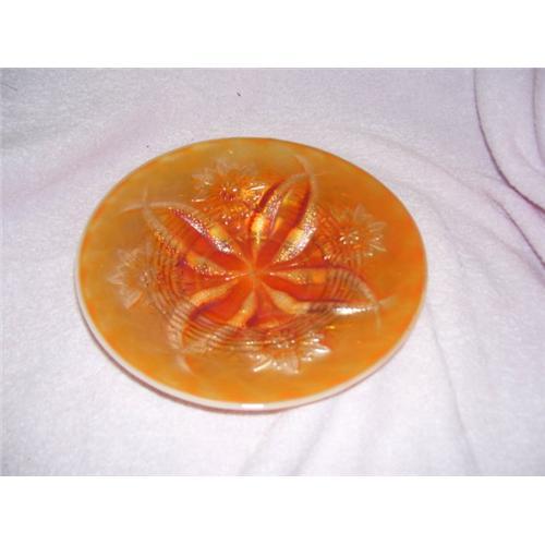 <tr><td>Title:Dugan Four Flowers Peach Opalescent Plate 6.5?</td></tr>