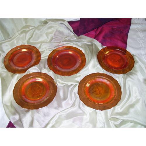 5 Dugan Lattice & Daisy saucers- Marigold. Very Good Condition.