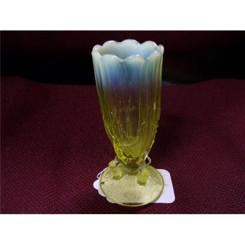 Dugans Yellow Twig Vase Crimped round is 4.65 inches tall. Thanks for looking!