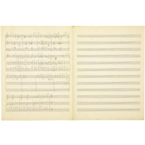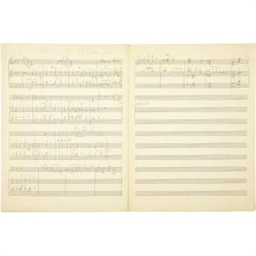 <B>Duke Ellington "Between the Devil and the Deep Blue Sea," Three-Page Hand Written Score (undated).</B></I> One of America's most accomplished composers, Edward Kennedy "Duke" Ellington (1899-1974) was also a peerless pianist, arranger, and band leader. As Jazz historian Scott Yanow has written, "Duke Ellington's contributions to Jazz and American music were simply enormous. As a composer, Ellington ranked with George Gershwin, Cole Porter, Irving Berlin, and their contemporaries. He wrote literally thousands of songs (the exact number is not known) of which hundreds became standards." Written in Ellington's own hand, this lot features a musical arrangement of Harold Arlen and Ted Koehler's famous song "Between the Devil and the Deep Blue Sea." This Jazz standard was originally recorded by Cab Calloway, and here's a chance to own a swinging rendition of the classic, arranged by Duke Ellington. This lot includes a letter of provenance from J. Bradley Shigeta which reads, "This letter is to confirm that all of the Duke Ellington manuscripts/scores/miscellaneous sketches in my possession were given to me by Mercer Ellington in 1995 as a personal gift for my assistance with the Duke Ellington Orchestra."<BR><BR><b>Shipping:</b> Flat Material, Small (<a target="_blank" href="http://www.heritageauctions.com/common/shipping.php">view shipping information</a>)