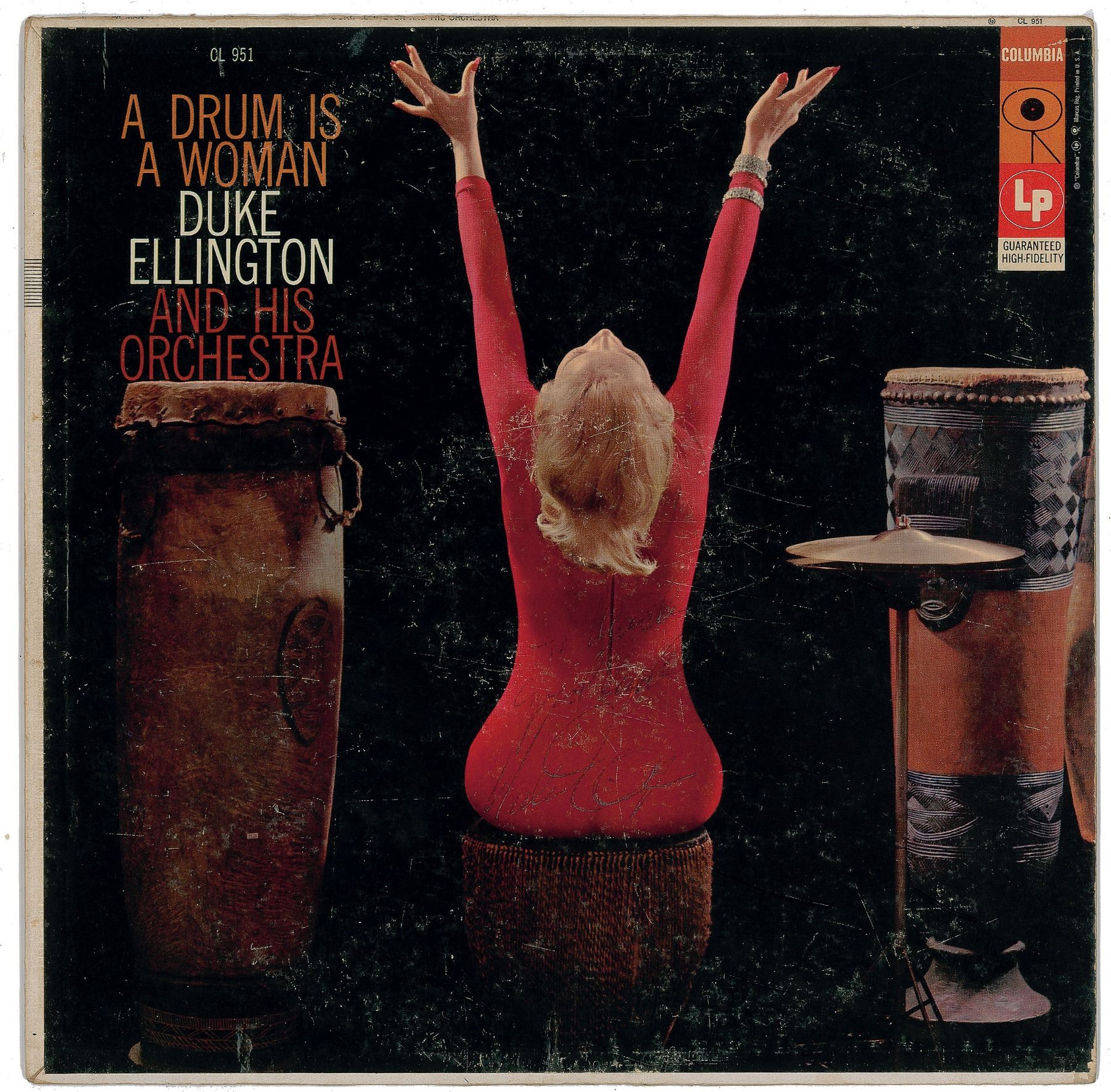 A Drum is a Woman album signed and inscribed on the front cover in ink, "To Mack, Good Luck, Duke Ellington," and on the reverse by 13 members of his orchestra: Sam Goodyard, Quentin Jackson, Paul Gonsalves, Willie Cook, Jimmy Woode, Ray Nance, Johnny Hodges, Cat Anderson, Harry Carney, Russell Procope, Harold Baker, John Sanders, and Ozzie Bailey. In very good to fine condition, with light scuffing and scratching, and poor-to-moderate contrast to Ellington.