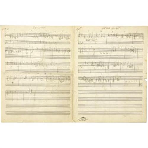 <B>Duke Ellington "So Long/Apple Basket" Two-Page Hand Written Score (undated).</B></I> Duke Ellington wrote and arranged his songs with the talents of his band members in mind. He often revised his charts so that the band's performances sounded fresh and different throughout the '30s, '40s, '50s, '60s, and '70s as the musical personnel changed. Here he presents two wonderful musical song sketches, "So Long" and "Apple Basket." This lot includes a letter of provenance from J. Bradley Shigeta which reads, "This letter is to confirm that all of the Duke Ellington manuscripts/scores/miscellaneous sketches in my possession were given to me by Mercer Ellington in 1995 as a personal gift for my assistance with the Duke Ellington Orchestra."<BR><BR><b>Shipping:</b> Flat Material, Small (<a target="_blank" href="http://www.heritageauctions.com/common/shipping.php">view shipping information</a>)
