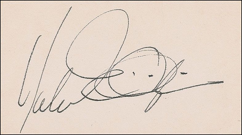 Two items: color cardstock 8 x 10 of Ellington at his piano, signed in black felt tip, “Good Luck, Duke Ellington,” adding the word “Love”; and an ink signature on an off-white 3.5 x 2 card. In fine condition, with irregular ink adhesion and some light brushing to the signature on the photo.