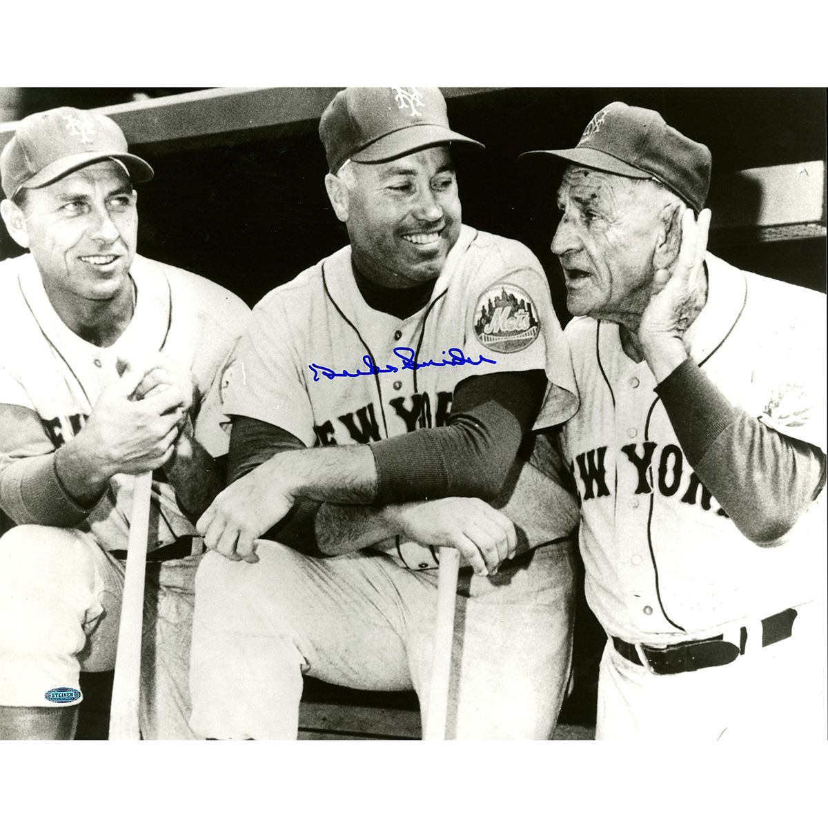 Duke Snider Signed B&W "with Hodges and Stengel" 16x20 Photo