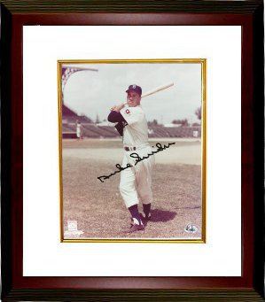 Duke Snider was an 8 time All-Star selection and 2 time World Series champion. He was nicknamed "The Silver Fox" and "The Duke of Flatbush" who played with the Brooklyn and Los Angeles Dodgers (1947–62), New York Mets (1963), and San Francisco Giants (1964). He was elected to the Baseball Hall of Fame in 1980. Duke Snider has hand autographed this Brooklyn Dodgers 8x10 Photo. FI Hologram and Certificate of Authenticity from Athlon Sports. Custom White Mat and Premium Mahogany Color Framed as shown.
