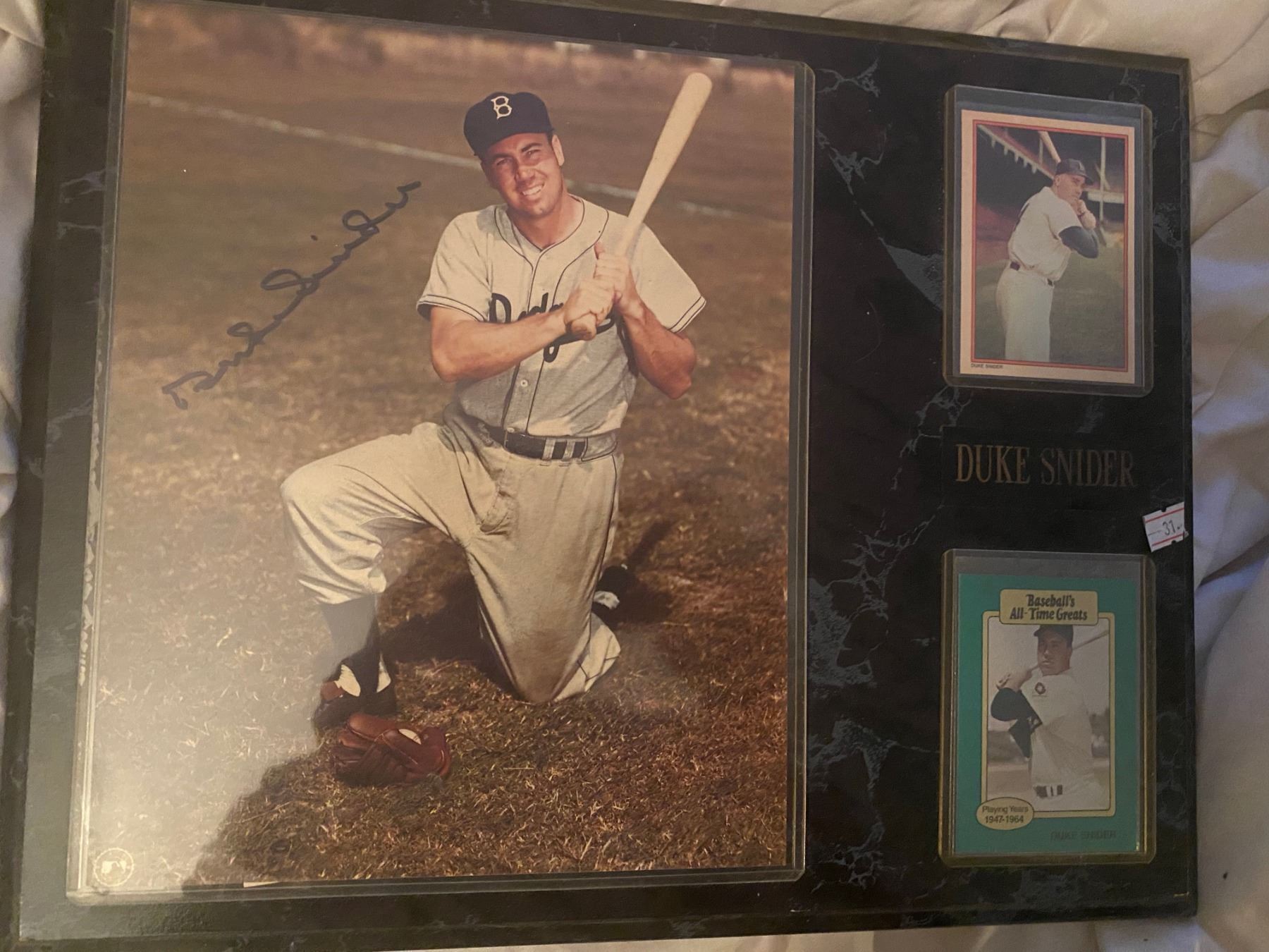 Duke Snider Sighned 8x10 WIth plaque and cards NO COA