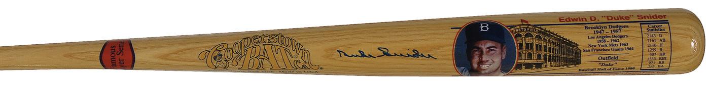 Official limited edition Cooperstown Bat Company Famous Players Series commemorative baseball bat, #352/1,000, signed in blue felt tip on the barrel, “Duke Snider.” In very fine condition.
