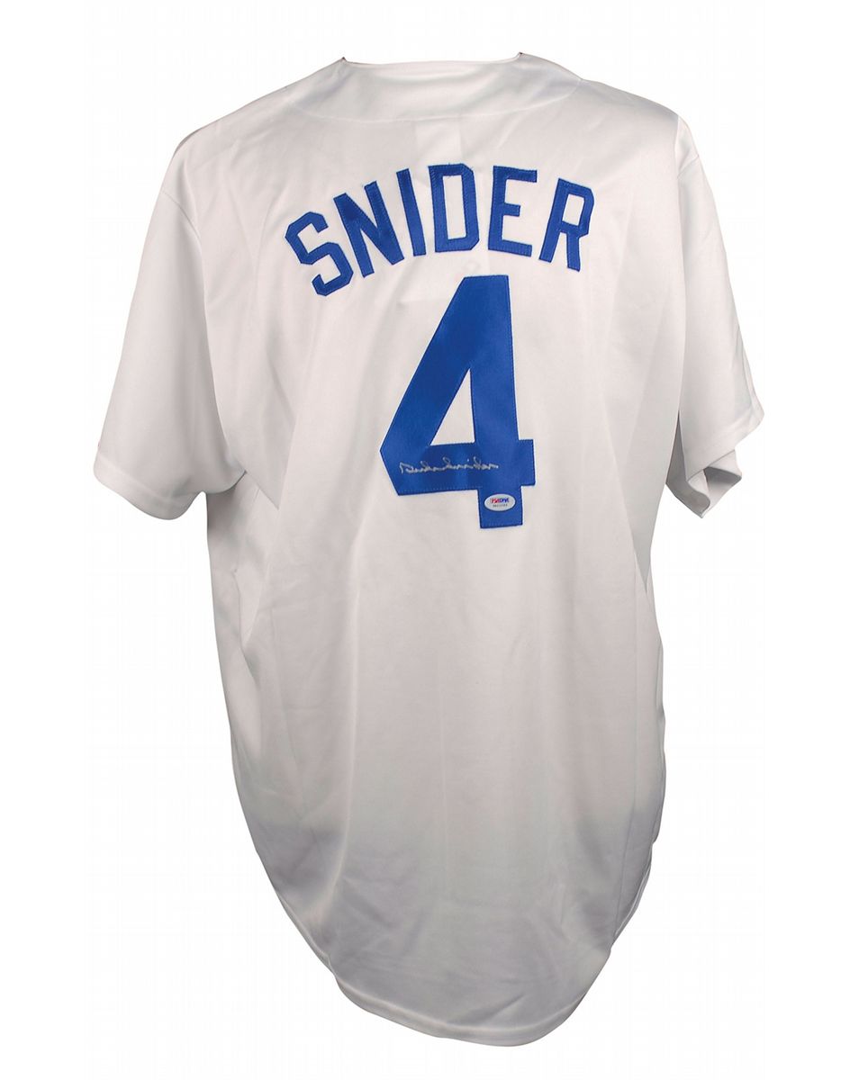 Official Majestic replica Dodgers baseball jersey, with sewn on letters and numbers, signed in silver ink on the number on the back. In fine condition, with a PSA/DNA authentication label affixed to number. Accompanied by a certificate of authenticity from PSA/DNA.